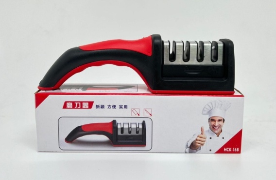 Ostrzałka do noży czterogłowicowa czerwono-czarna 21,5x6x5 cm w kartonie