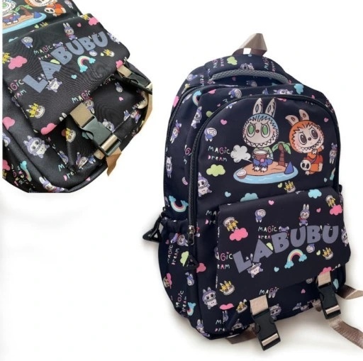 Plecak LABUBU –czarny, pojemny, uroczy! Plecak z motywem postaci Labubu – idealny do szkoły i na co dzień. - Pojemne komory + dodatkowe kieszonki na zamek - Regulowane szelki i wygodny uchwyt - Kolorowy, bajkowy design z tęczami, chmurkami i króliczkami Idealny do szkoły, na wycieczki czy codzienne spacery. Wymiary: 43x30x13