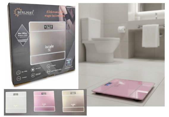 Waga elektroniczna łazienkowa szklana do 180 kg 26x26 cm MIX KOLOR
